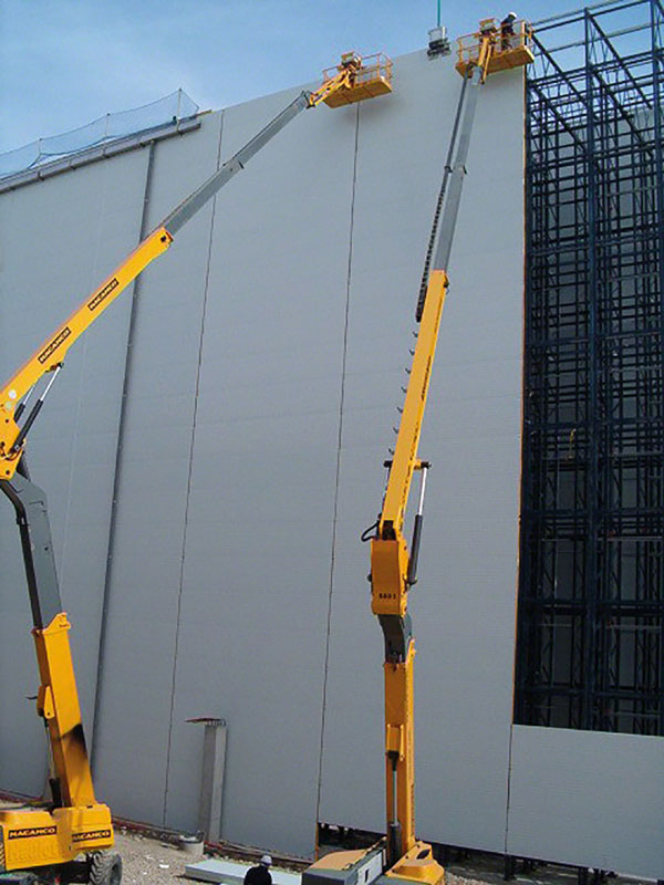 Lors de la construction de ces entrepôts, d'autres éléments vitaux doivent être pris en compte. Tout d'abord, il faut vérifier que la dalle est correctement isolée et qu'elle résiste aux importantes charges statiques et dynamiques auxquelles elle est soumise. Ensuite, il est nécessaire de prévoir une galerie supérieure où sont placés et maintenus les évaporateurs, les vannes, la tuyauterie et les câbles des installations frigorifiques, électriques et anti-incendie. Enfin, la sécurité du montage, avec les équipements de levage pour travailler à plus de 30 m de haut, etc.