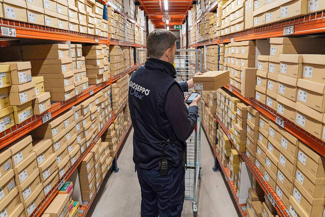 En Espagne, dans la ville d’Elche, Gioseppo exploite deux installations équipées de solutions Mecalux : un entrepôt automatisé autoportant pour palettes d’une capacité de 5 844 articles et un entrepôt de picking, doté de rayonnages pouvant contenir 480 000 caisses. Au total, la marque y gère 1,6 million de chaussures.