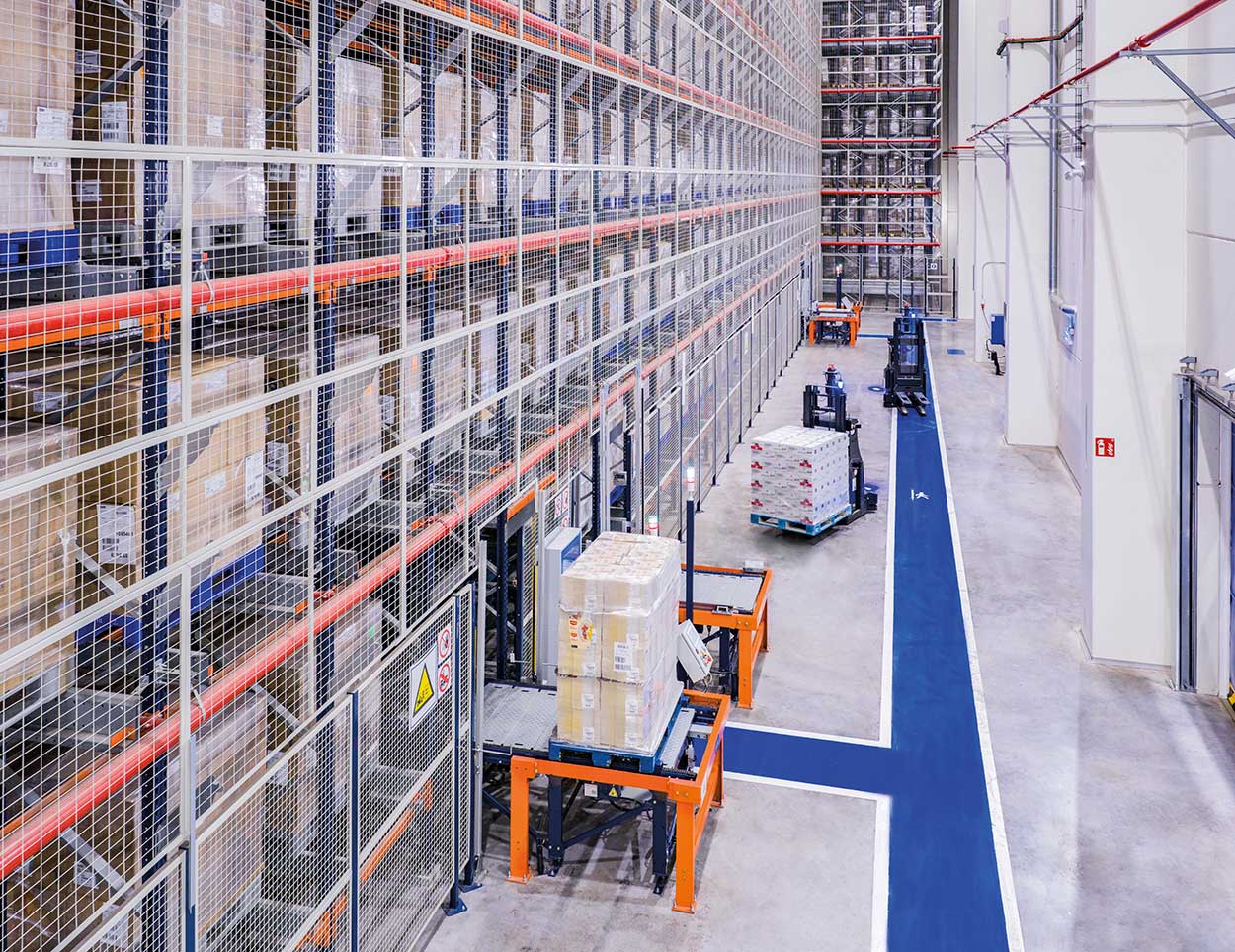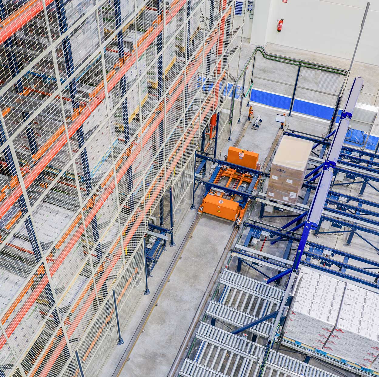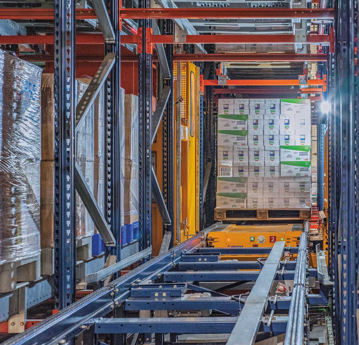 L’entreprise s’est équipée du système Pallet Shuttle automatique avec transtockeur de Mecalux afin d’accélérer les flux de marchandises et de gagner en densité de stockage. Cette solution, haute de 18,5 m, accroît grandement la capacité de stockage et accélère fortement les flux grâce à une navette électrique autonome assurant le chargement et le déchargement des palettes dans les rayonnages.
