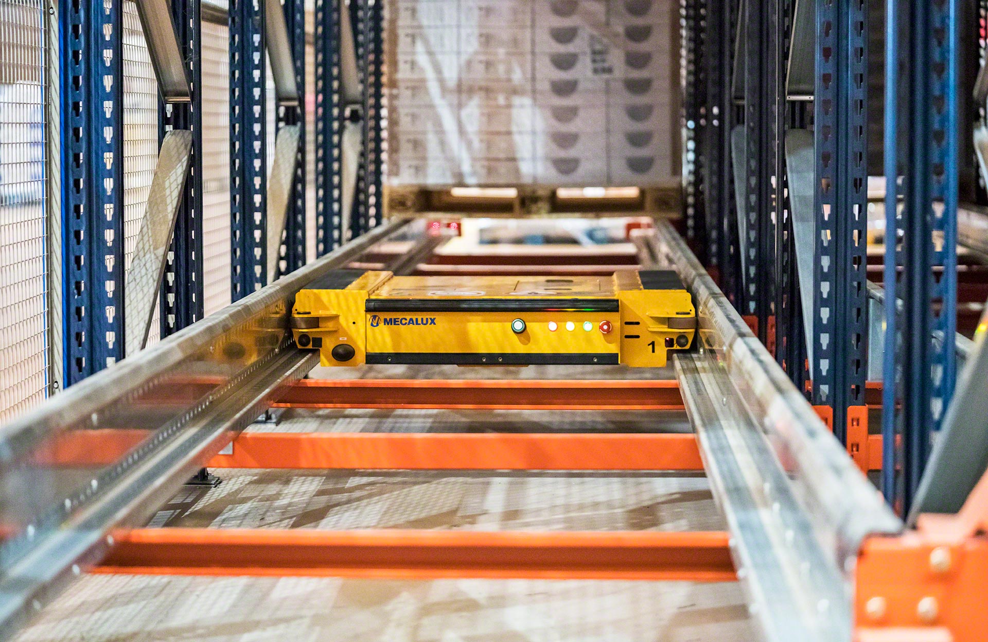 Toutefois, Mecalux propose également une alternative entièrement automatisée : le Pallet Shuttle automatique. Le chariot élévateur est alors remplacé par un transstockeur ou par un ensemble de navettes assurant le transport du Pallet Shuttle et de la palette dans chaque canal de stockage, et ce en toute autonomie. Avec ce système, les opérations sont pilotées par un logiciel de commande.
