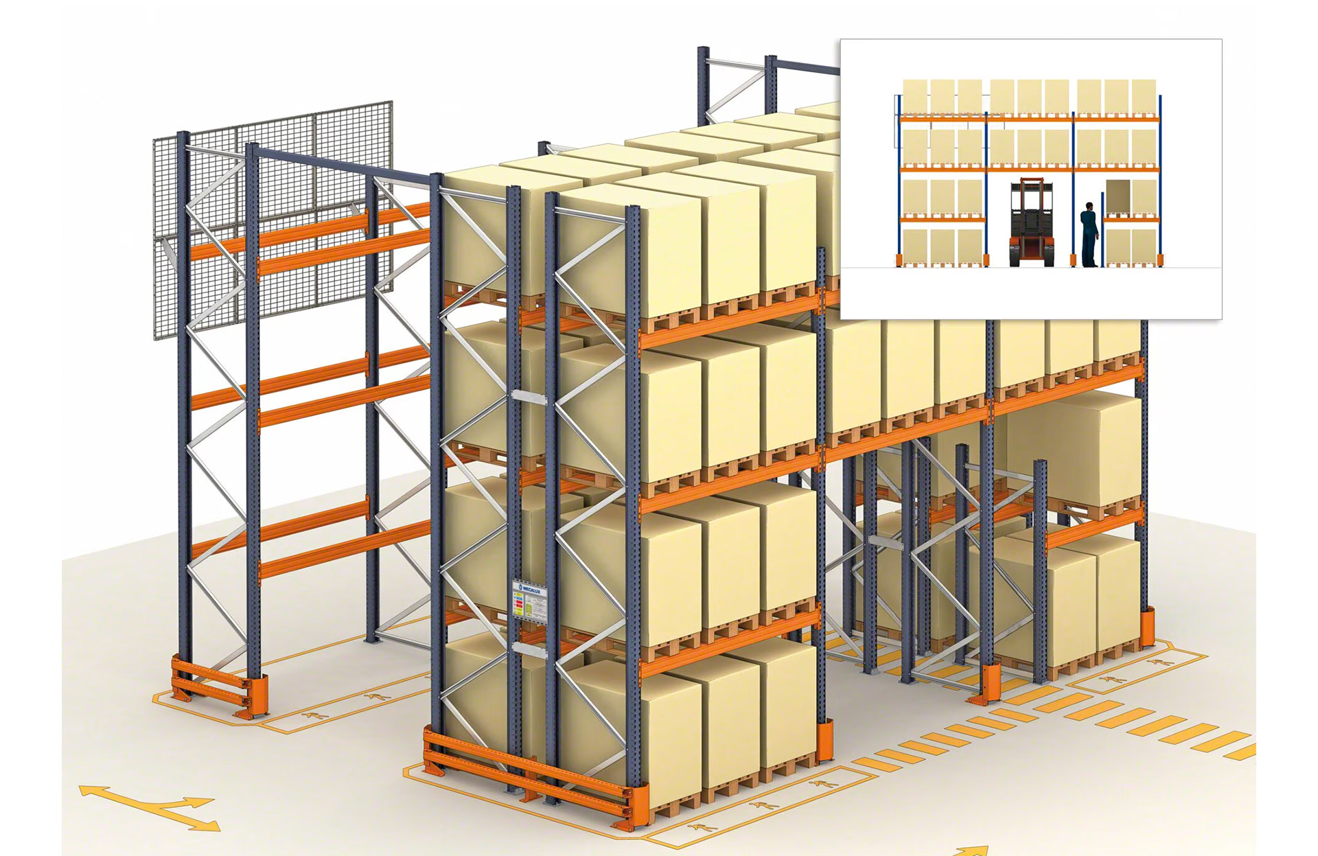 - Accès direct à chaque palette : toutes les palettes sont accessibles depuis l’allée de travail.