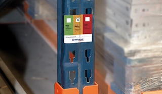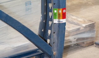 Lors des inspections de Mecalux, l’état général des rayonnages sera évalué et les parties éventuellement endommagées seront identifiées au moyen d’étiquettes autocollantes.