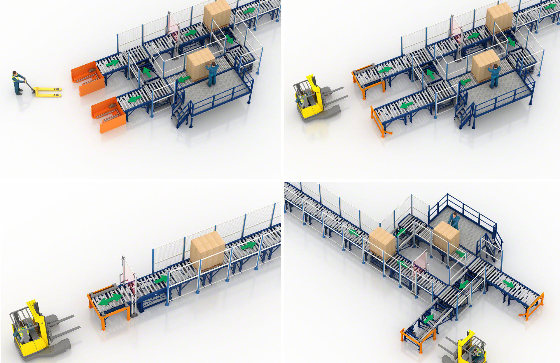 - Polyvalence : créez des circuits illimités plus ou moins complexes pour répondre à des besoins très variés, tels que l’accumulation, la rotation ou le levage de palettes.