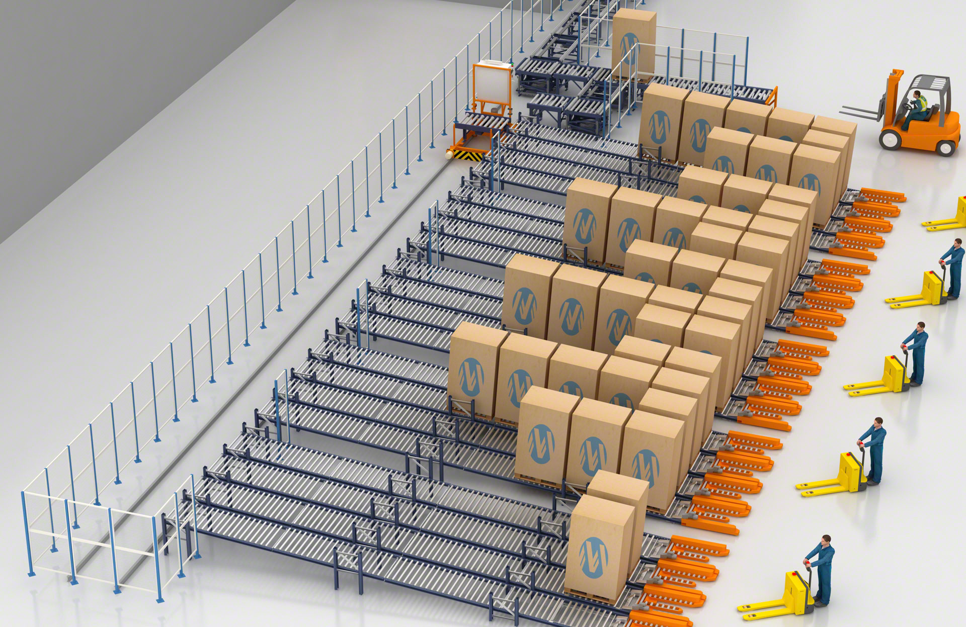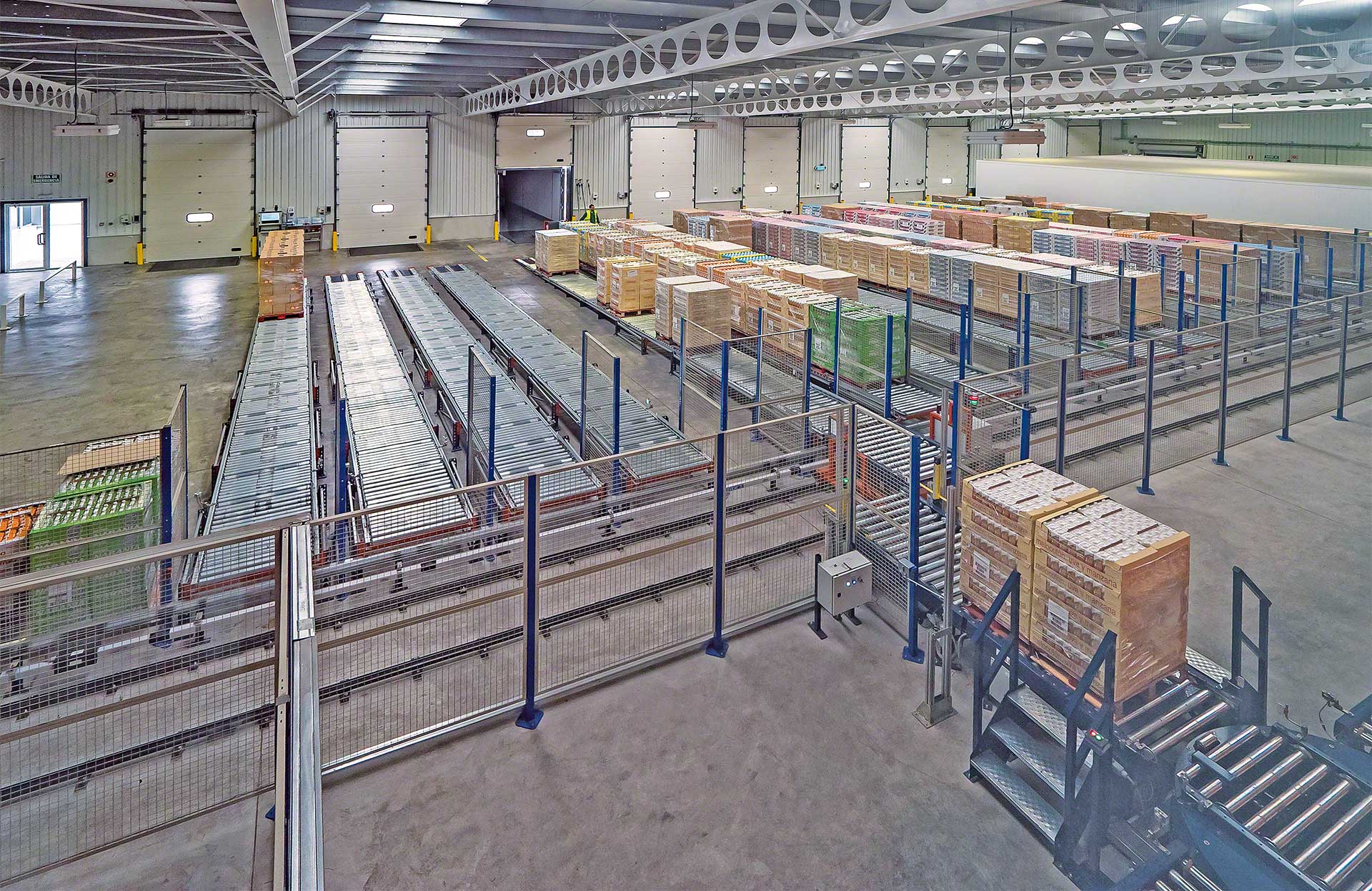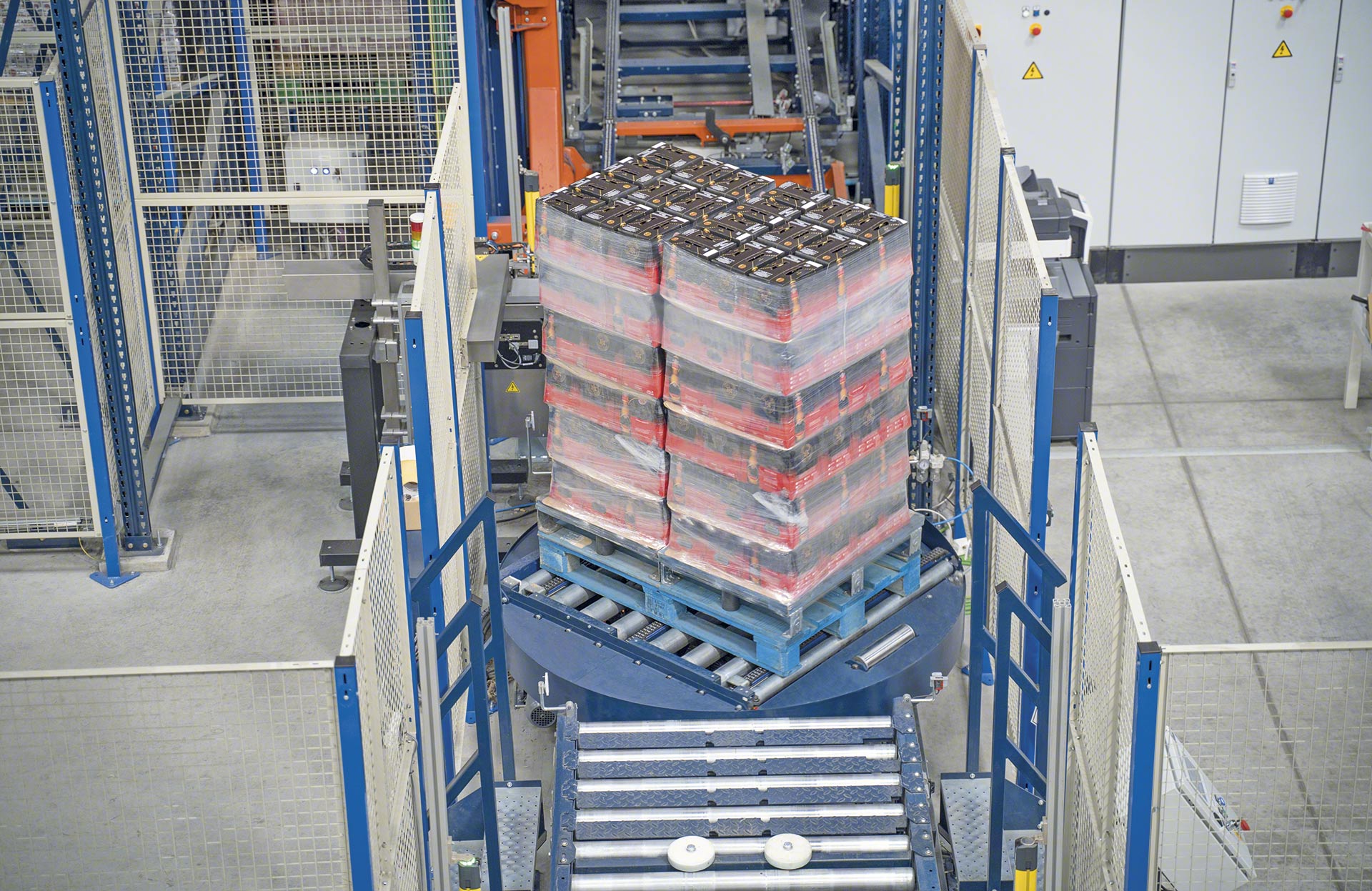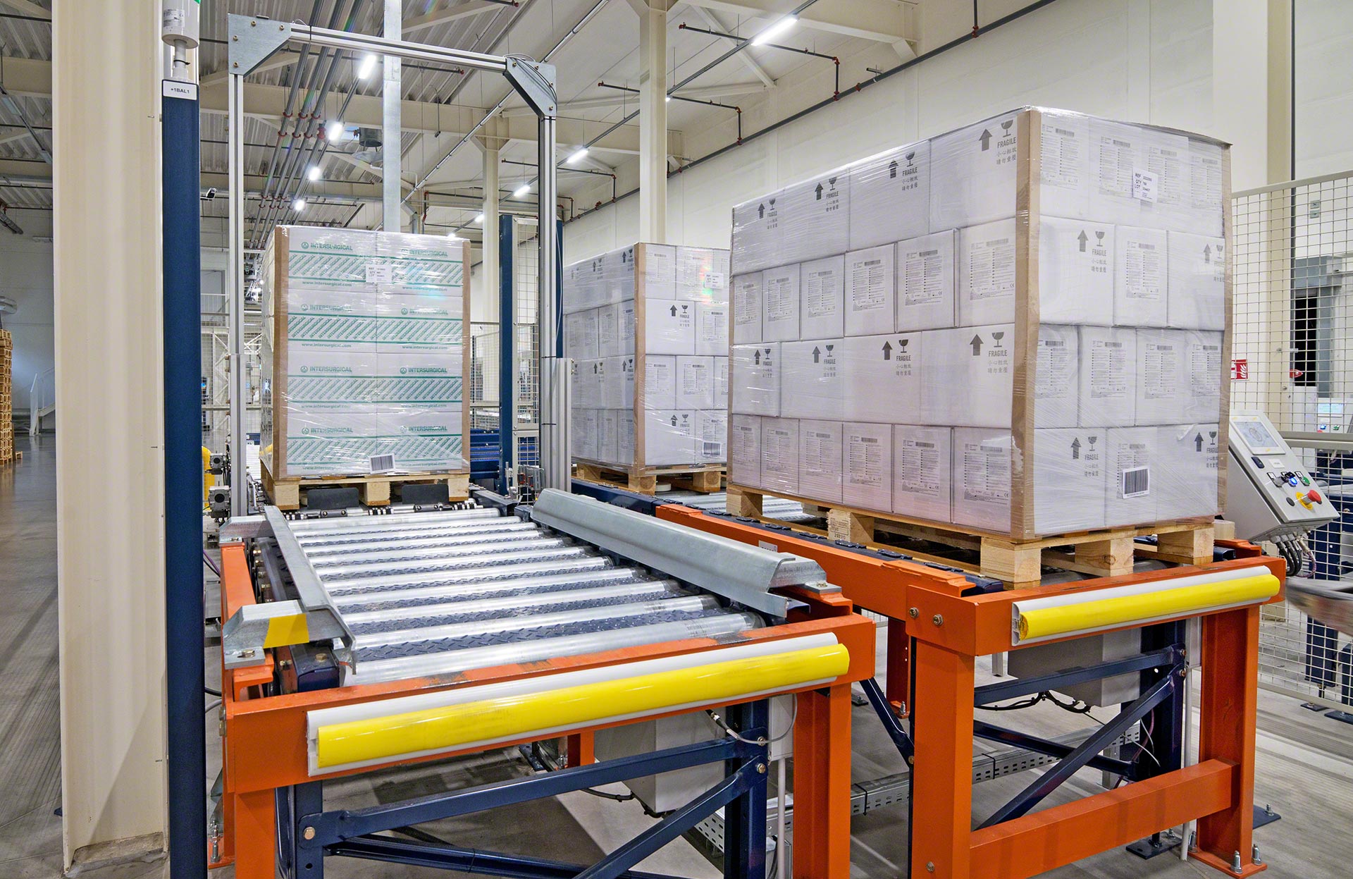 Les circuits de convoyeurs à rouleaux sont sécurisés par des grillages périphériques délimitant les zones à risque pour éviter les accidents, ainsi que par d’autres éléments et dispositifs garantissant l’intégrité des unités de charge et de l’installation.