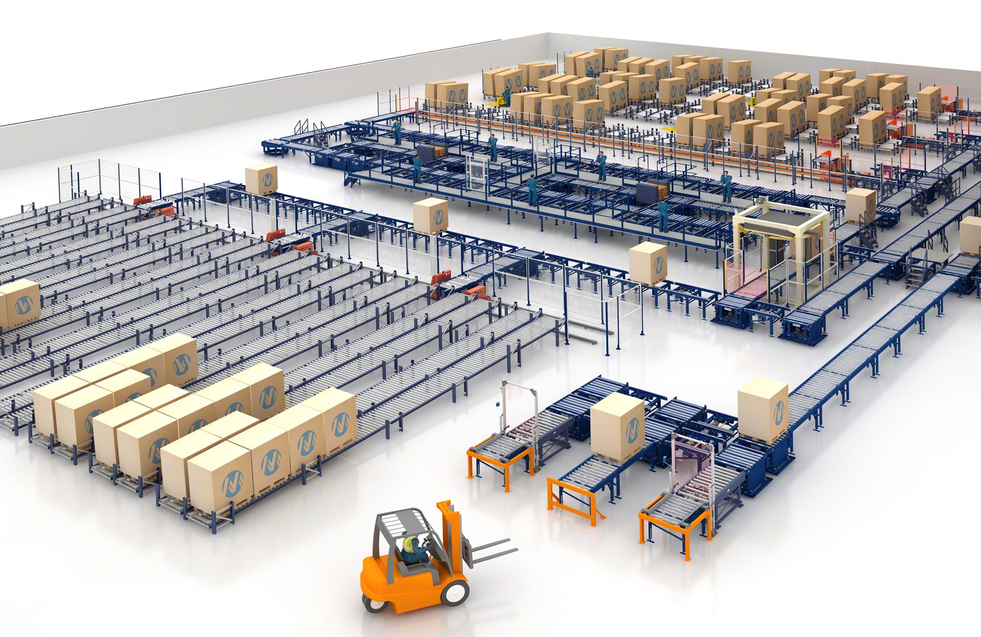 Les convoyeurs de Mecalux emploient des rouleaux ou des chaînes pour déplacer les palettes le plus efficacement possible. Grâce à une large gamme de solutions disponibles, vous pouvez configurer une multitude de circuits à complexité variable pour répondre à vos besoins logistiques les plus diverses.