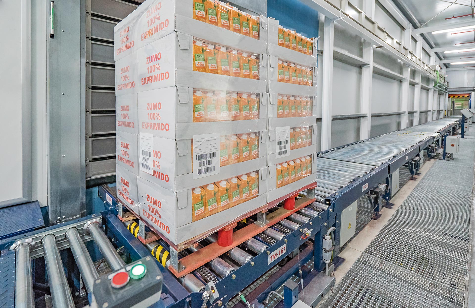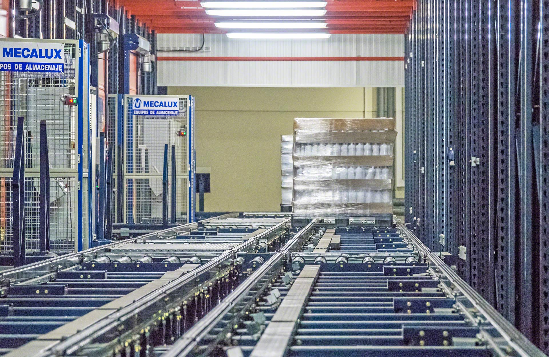 Les convoyeurs de palettes peuvent fonctionner dans une large gamme de températures : de -30 °C à 40 °C. Mecalux propose également des convoyeurs en acier inoxydable capables de fonctionner dans des zones humides (humidité relative supérieure à 70 %).