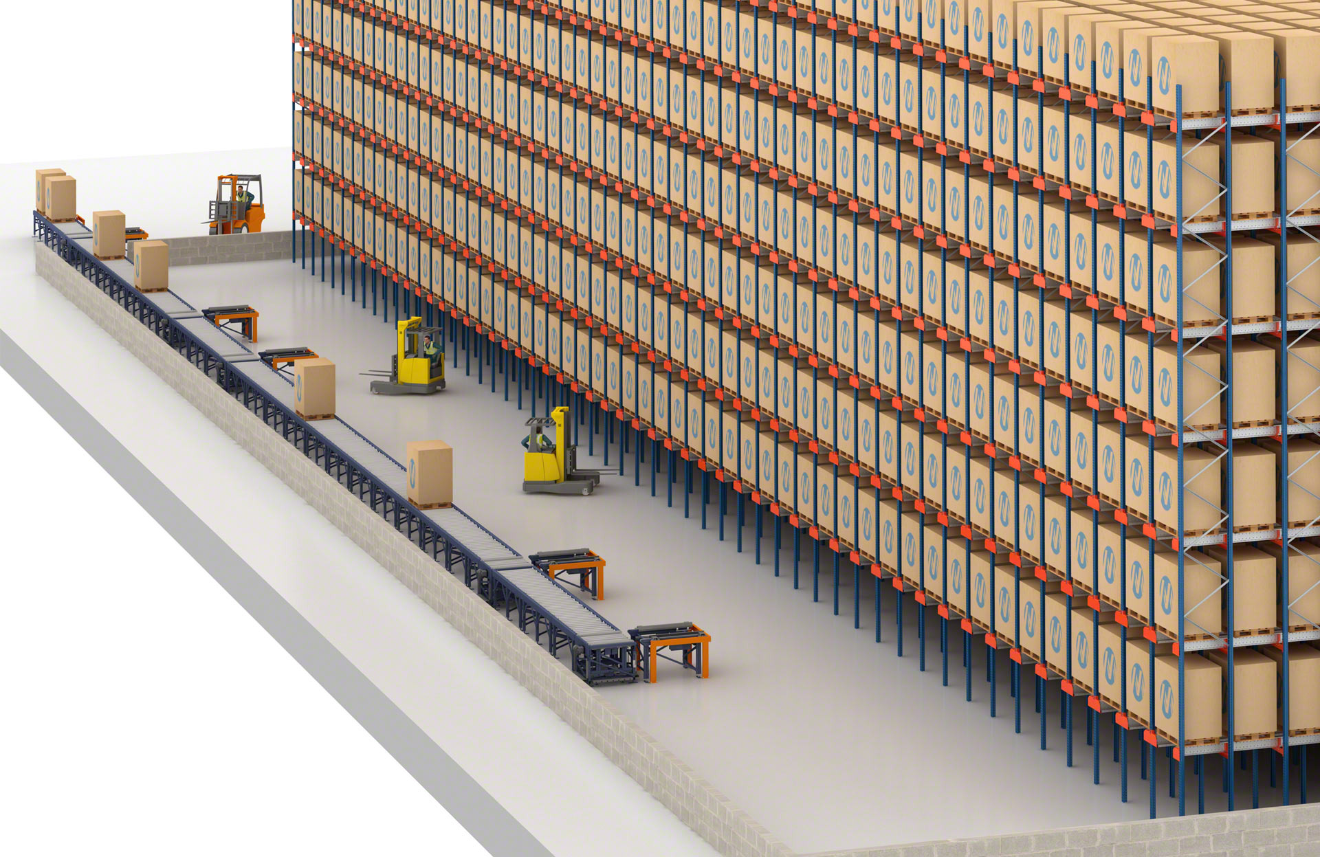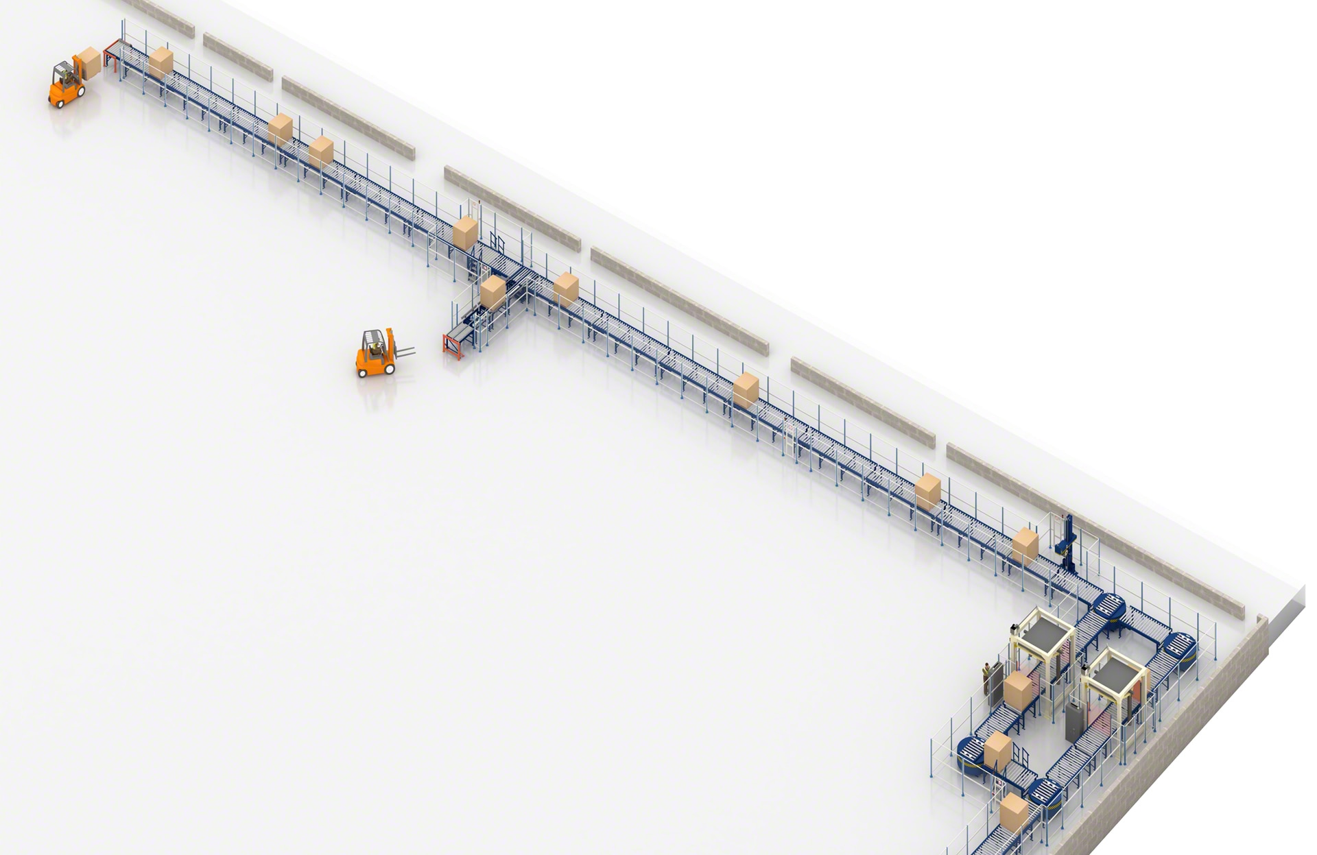 - Automatisation totale : automatisez entièrement le transport interne de vos charges palettisées grâce aux rouleaux de convoyage.