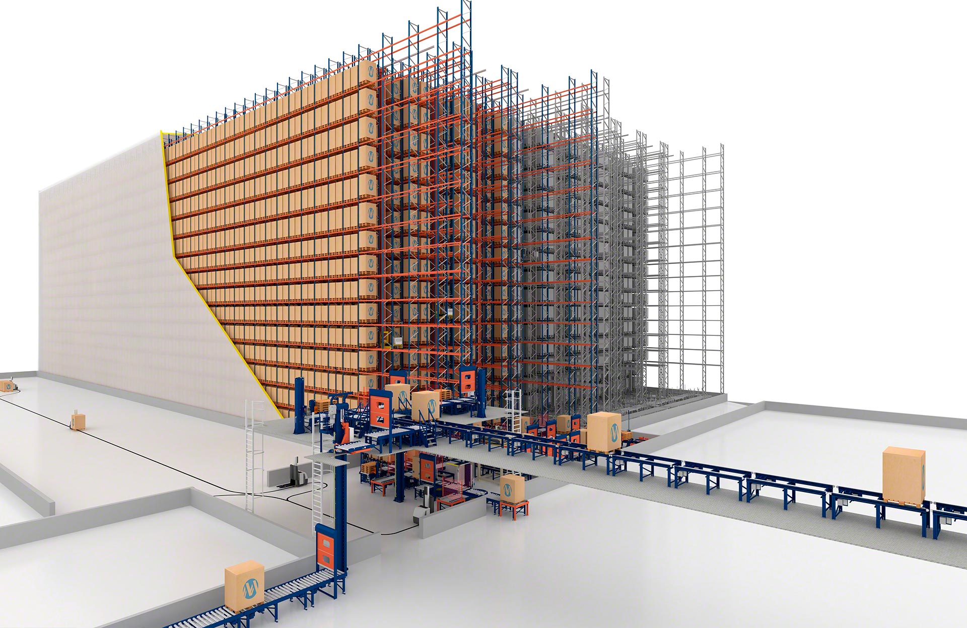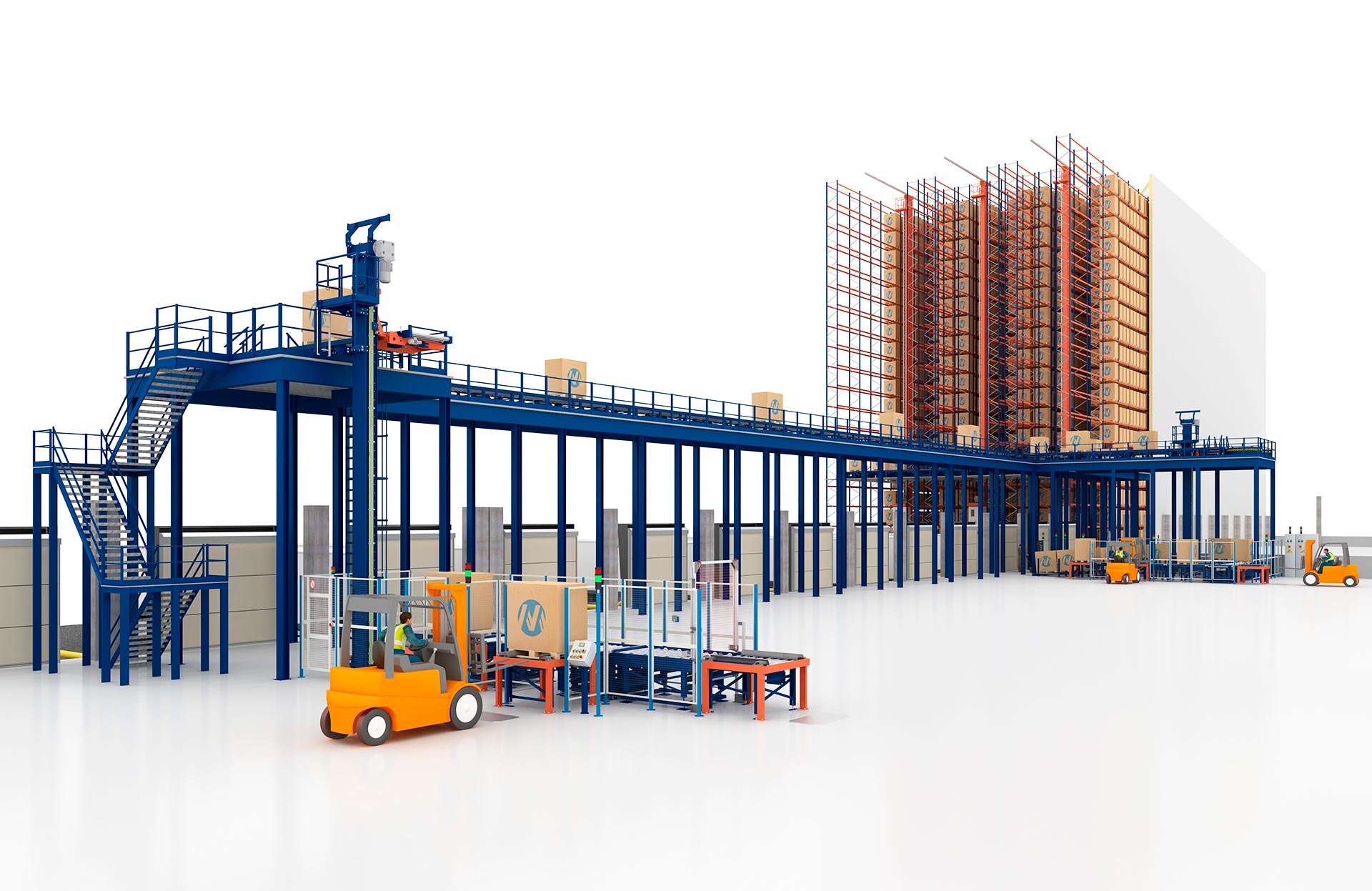 Les transstockeurs sont des équipements conçus pour le stockage automatique de palettes. Ils se déplacent simultanément à l’horizontale et à la verticale le long des allées de stockage, munis de fourches télescopiques qui leur permettent d’extraire et de déposer les palettes de manière autonome.