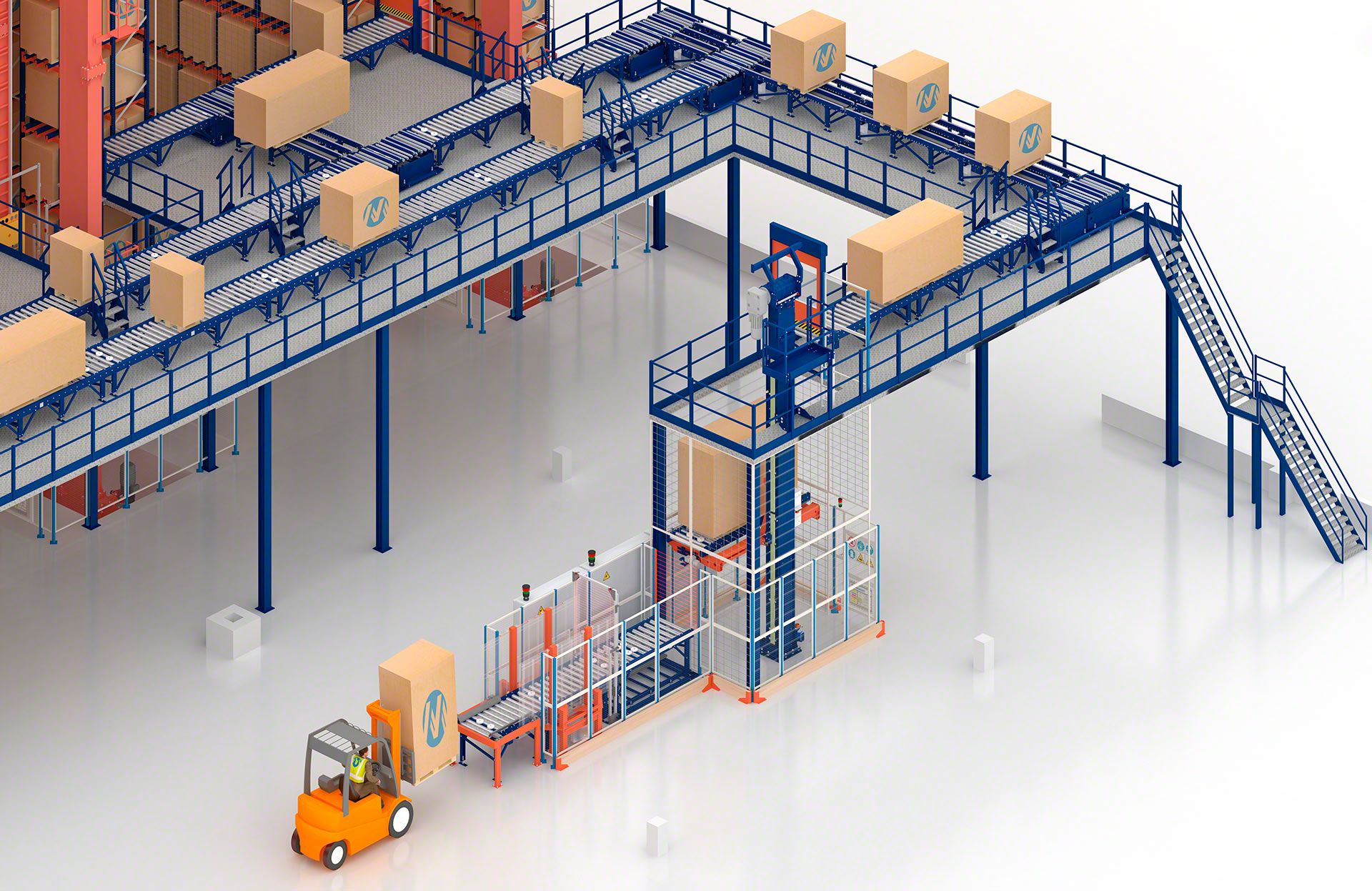 Les élévateurs de Mecalux se distinguent par leur robustesse et leur adaptabilité, s’intégrant facilement dans les entrepôts automatisés comme conventionnels. Dotés d’un moteur électrique et d’un convoyeur dédié au transfert précis des charges, ces systèmes optimisent le flux interne de palettes et renforcent la productivité en réduisant considérablement les temps de transport.