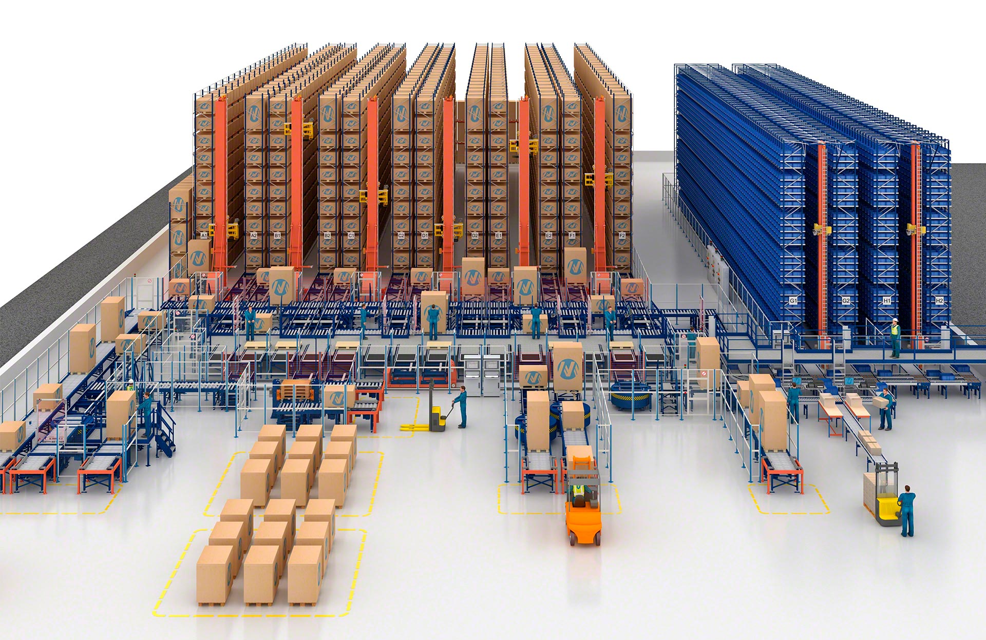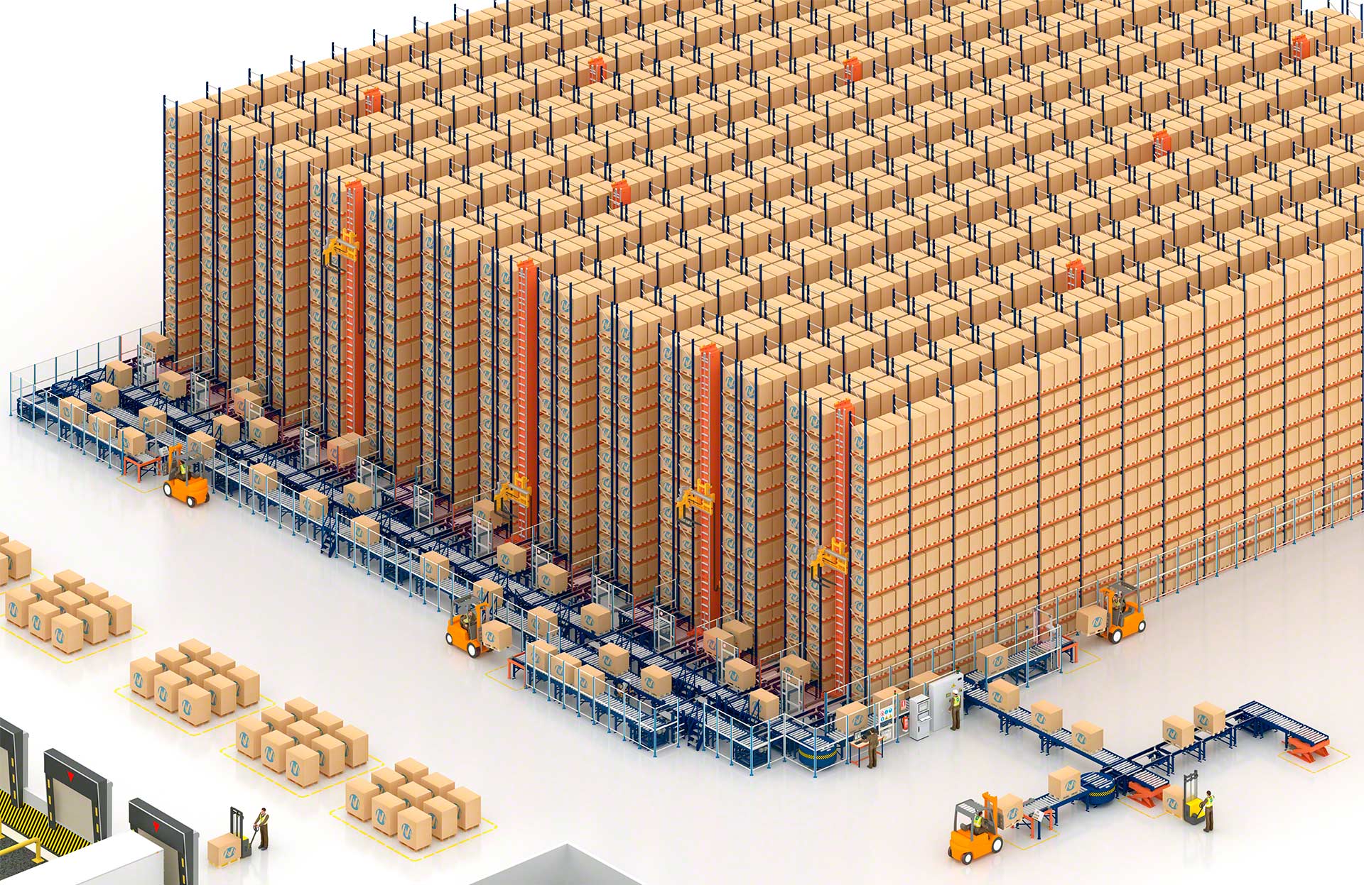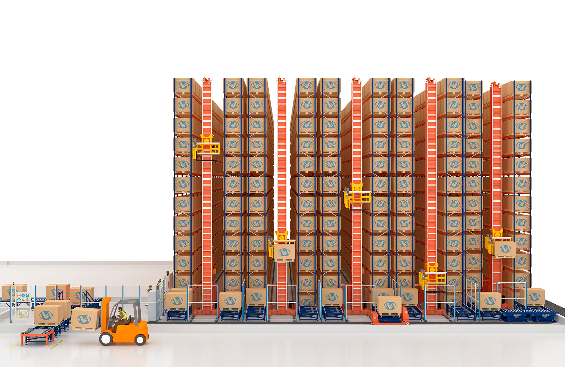 - Solution globale : Mecalux conçoit, fabrique, installe et met en service les transtockeurs et les convoyeurs, ainsi que les logiciels de contrôle et de gestion.